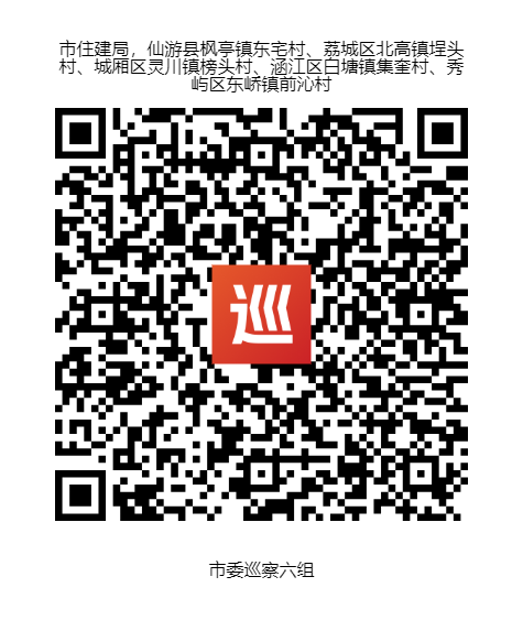 市委巡察六组将在市住建局工作20天左右。巡察期间设专门值班电话:18******596;每天受理电话的时间为8:00-17:30;邮政信箱:福建省莆田市A109邮政信箱;可扫描下方二维码登录“福建巡视巡察‘码上扫’”小程序反映问题。市委巡察六组主要受理反映市住建局党组领导班子及其成员、市委管理的其他干部及下一级主要负责人、重要岗位领导干部问题的来信来电来访,重点是关于违反政治纪律、组织纪律、廉洁纪律、群众纪律、工作纪律和生活纪律等方面的举报和反映。其他不属于巡察受理范围的信访问题,将按规定由市住建局和有关部门认真处理。
