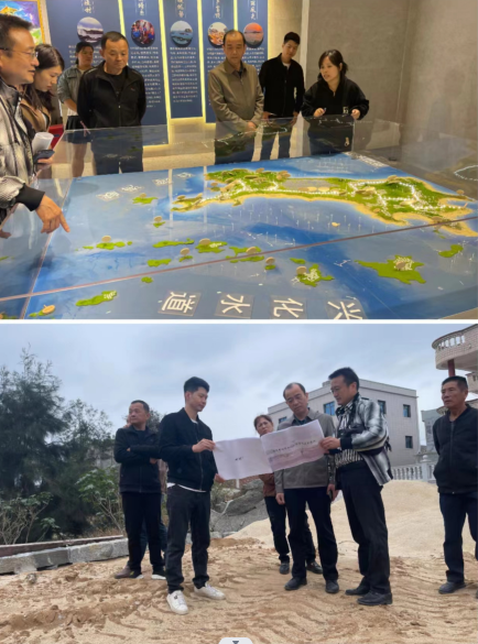 在渔村民俗文化馆,潘建平一行了解了渔村文化公园建设情况、游客服务中心和党群服务中心等项目建设进度及经济社会发展情况,并和村干部深入交流“渔旅融合发展”的思路与措施。